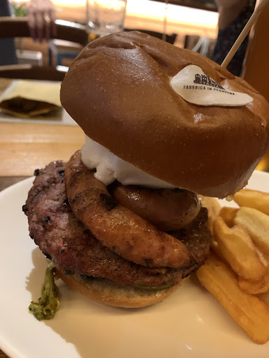 Read moreIl locale è molto carino, spazioso e con un ampio parcheggio all’esterno. Nonostante fossimo coppie con bambini e passeggini, è stata davvero una serata piacevole proprio per l’ampio spazio a disposizione senza doverci stressare. Molto spesso quando si diventa genitori e si esce con bambini e passeggini, ci sono locali che ti fanno “stressare” perchè i bambini non possono muoversi o perchè ci sono spazi ristretti con tavoli addossati l’uno all’altro. Invece qui mi sono sentita tranquilla e rilassata. Ho potuto finalmente cenare con gioia, godendomi la serata e chiacchierando con gli amici al tavolo. Noi eravamo seduti all’interno ma il locale dispone anche di zone all’esterno molto carine dove poter mangiare in terrazza. Comunque un locale curato nei minimi particolari. Per quanto riguarda il cibo, abbiamo preso tutti dei panini con hamburger o salsiccia e delle birre. Devo dire che c’è un’ampia scelta sia di birre che di panini, ricercati e particolari. La carne utilizzata e le altre materie prime sono buone. All’inizio eravamo un po scettici nei confronti di questo pub per via del punteggio un po’ basso qui su Google (3.9 al momento) ma abbiamo voluto provare. Non ci ha minimamente deluso.. anzi, ha superato le nostre aspettative e per questo voglio dare 5 stelle (meritano un punteggio più alto). L’unica nota negativa è stata che tutti i piatti sono arrivati freddi a tavola. Non so se è stato solo un problema di quella sera in cui siamo capitati noi o è una mancanza di organizzazione in cucina. Faccio un appello al pub: per favore mai più hamburger freddi e sarete il nostro pub preferito! 🙏🏻 È un peccato mangiare un panino freddo quando la materia prima utilizzata meriterebbe di essere gustata calda! Ci ritorneremo...