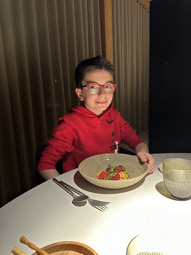 La cucina, offre piatti che sono veri capolavori di gusto e presentazione. Utilizzando ingredienti locali di stagione, il menu esplora sapori tradizionali con una raffinatezza e un'innovazione sorprendenti. Ogni piatto è un'avventura, un viaggio gastronomico che sottolinea l'arte culinaria in ogni boccone. Giuseppe (10 anni) è rimasto così impressionato dalla cena che ha voluto personalmente congratularsi con lo chef. Nonostante avesse scelto il nostro stesso menu, ogni piatto è stato per lui un successo. Alla fine della serata, con una sincerità che solo un bambino può mostrare, ha chiesto di poter incontrare lo chef per esprimere il suo entusiasmo.