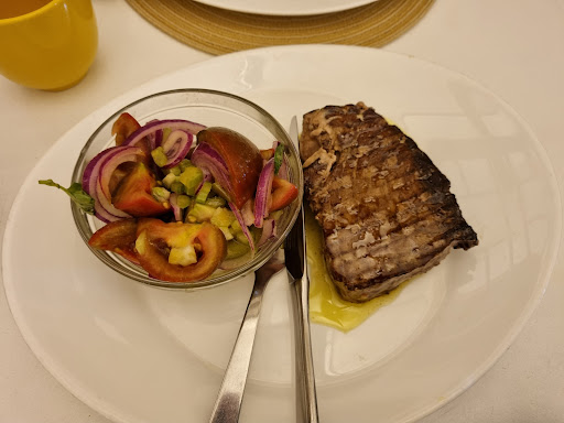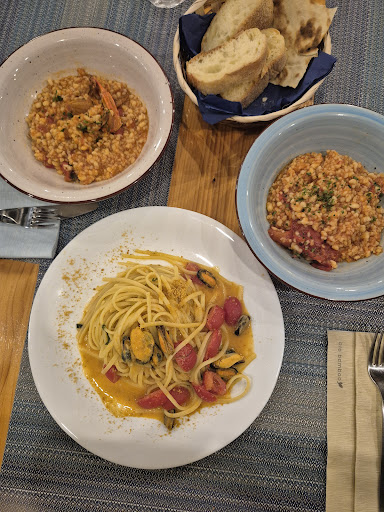 Read moreAmbiente molto carino e personale squisitamente gentile e simpatico. Sfortunatamente la cucina non era altrettanto all'altezza del resto, a cominciare dal rapporto qualità-prezzo. Siamo rimasti piuttosto colpiti dalla bellezza della grigliata mista di pesce non appena arrivata, anche se normalmente tutto quel pomodoro non è previsto... Ad uno sguardo più attento (e l'assaggio non inganna), ho capito che serviva a coprire le bruciature - i calamari erano letteralmente amari, neri, neanche ben puliti, che meritavano di tornare in cucina! Si possono ancora non pulire le griglie come si deve sapendo i rischi per la salute, nel 2024? Anche il resto del pesce, sia tonno che pesce spada, erano piuttosto insipidi e non di qualità. Il primo idem, non era niente di che. Abbiamo aspettato abbastanza per cenare ed era tardi, quindi abbiamo mangiato comunque. Una nota di cura meriterebbe l'acquario all'ingresso che mal di addice ad un posto così finemente arredato: andrebbe seriamente filtrata l'acqua... i due pesci che ci vivono oltre a starci stretti, non navigano troppo nel pulito. Pessima impressione per chi se ne...