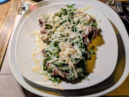Read moreLa qualità della carne proposta ottima. Ma non basta per rendere piacevole una serata. Tavolo prenotato, ma in un punto di passaggio, accanto accanto alla "vetrina" delle carni, non proprio piacevole mangiare a tu per tu con pezzi enormi di carne appesa cruda; sarebbe preferibile dire che non c'è disponibilità, piuttosto che inventare un tavolo in un punto scomodo e non adatto. Personale risicato, visibilmente stanco (ma gentile) per la mole di coperti. Tempi di attesa troppo lunghi, 1ora dal momento in cui ci siamo seduti al ricevimento delle pietanze. Prezzi bevande troppo elevati, calice con quantità di vino molto scarsa, posate sporche, birre buone (ma care). Musica molto alta e via vai tra persone che andavano in bagno (eravamo vicino anche all accesso al bagno), non hanno reso piacevole la serata. Peccato perché la qualità della...