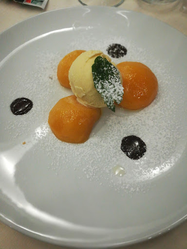 Per finire il dolce, incuriositi dalle pesche tipiche di questa zona, abbiamo preso un dolce con queste pesche, ma ufff delusione, ovvero in se non era male, buono, MA ci si aspettava molto di più e anche buttando un occhio al rapporto qualità prezzo.