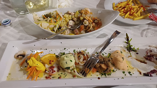 Read moreMai giudicare un libro dalla copertina; quale migliore affermazione per descrivere questo ristorante. Specifichiamo subito che il ristorante fuori non è brutto, anzi è tutto tenuto molto bene e di nuova costruzione, ma dato che si trova all'interno dell'area di un benzinaio si può pensare che non sia un gran che. Sbagliatissimo: entrando si capisce subito l'attenzione data ai particolari e all'estetica. Il personale è splendidamente gentile e attento e la cucina mi ha stupito. Abbiamo cenato la vigilia di natale con il locale strapieno di persone e in poco più di un'ora abbiamo ordinato e mangiato 3 primi diversi, due grigliate di pesce e due fritti con patate al forno e patate fritte. I primi erano:tagliatelle al ragù per i bimbi con un profumino veramente invitante (porzioni enormi), gnocchi con sugo di pesce bianco buonissimi e molto delicati e risotto al sugo di pesce rosso con cottura perfetta del riso ed un sapore pazzesco. I secondi erano: grigliata di pesce senza pan grattato (ci era stato detto dal cameriere in fase di ordinazione), buonissima con un polipo fatto alla griglia che era un burro da quanto era tenero e il fritto; questo purtroppo insieme alle patate fritte non era all'altezza delle altre portate ed è per questo che non ho dato 5 stelle, mentre le patate arrosto impeccabili. Il vino bianco della casa, un Bianchello della cantina Guerrieri era assolutamente sopra la media rispetto ai soliti vini della casa dati in altri ristoranti. Prezzo modico se si tiene conto anche delle porzioni abbondanti. Concludo dicendo che ne è valsa la pena fare un po di strada anche perché mangiare così bene il pesce in un ristorante non proprio lungo mare non è cosa...