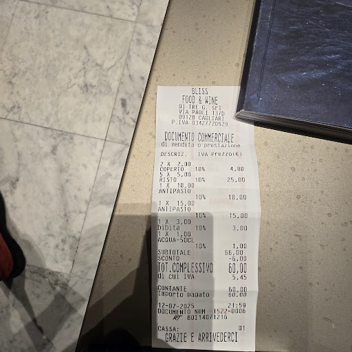 Google Maps has shown an average rating of 4,6. This was the reason that we have done a Reservation for July, 12th in 2025. Soon we received a table inside although there are tables outside as well. Then a Server appeared with the Menu ( one printed page). 10 minutes later he took our order: 5 fresh Prawns ( 5 € per piece), Tuna TARTARE (18 €) and " CALAMARATA AI FRUTTI DI MARE, SALICORNIA E BOTTARGA (20 €) and a small bottle of Mineralwater ( served in a Plastic bottle, 0,5 l = 1 €) and one Coke ( served in a closed (!) can, 3 €). From the House we have received Bread. The fresh Prawns were served on Ice cubes. What a pity that the edge of the plate was dirty. And of course the bowels of the Prawns were not cleaned. Then the Tuna TARTARE was served. It was a very small portion. It was fresh with good taste. Then my " CALAMARATA AI FRUTTI DI MARE with Bottarga was served. I have started a complaint to our Server that it wasn't "FRUTTI DI MARE "! It was only (!) served with MUSSELS. I have explained that FRUTTI DI MARE is a mixture of Seafood. Everybody can read the contents on Internet. Of course the waiter rejected my complaint and has explained to me that BOTTARGA is also Part of FRUTTI DI MARE and it is Seafood... Then he spoke with the owner (?) wearing glasses. He shook his head and later he came to our table to explain that the way of preparation only with Mussels is correct. Although my Partner has explained it in ITALIANO LANGUAGE he doesn't wanted to accept my complaint. But finally I was allowed to order something different: VITELLO TONNATO. It was served fast, good looking and the taste was good. But even this plate was dirty on the edge ( see separate picture). 5 minutes later the Boss appeared and has expressed his apologize telling me that I was totally right with my complaint. He has informed himself. Finally I got a Discount of 6 € on the bill.