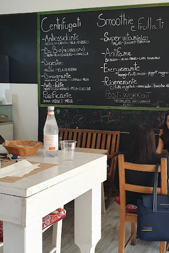Il locale è molto carino ed offre varie tipologie di dolci,centrifugati,smoothie e frullati e servizio di caffetteria. Ampia scelta di dolci e bevande biologiche esposte. Il locale è veramente molto piccolo,con circa 20 posti a sedere. In orari di punta è davvero difficile muoversi e pagare,insomma,diventa piuttosto caotico.Ho pranzato seduta sulle sedie lungo le vetrate che danno sulla strada. Ho mamgiato altre volte in questo locale ed oggi ho preso un' insalata verde mista con aggiunta di carote,tonno,uova e pomodorini,più una bottiglietta d'acqua ed un paninetto da loro offerto (9 euro totali). Effettuano anche servizi di consegna con deliveroo. Servizio igienico non sempre pulito e...