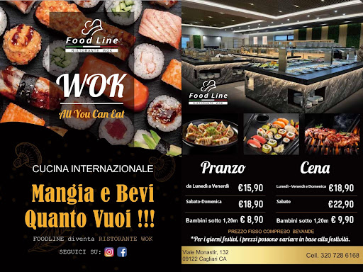 Read morePrima volta dentro Foodline wok, tanto cibo per niente buono, tra carne bruciata, fritture pure, sushi scadente e insapore e cibi altrettanto acidi e insapori è stata un'esperienza abbastanza brutta, ho preferito lasciar stare che continuare a mangiare per assaggiare le cose perché non riuscivo più a sopportarlo, ( anche la coca cola non era buona era acqua zuccherata gasata ) quindi cibo 1/5 servizio inesistente, i piatti vuoti rimangono a lungo nel tavolo tanto che quando siamo andati via era ancora la, tavoli sporchi con mosche vicine e pavimenti pieno di briciole quindi cura e servizio del posto 0/5 ambiente colpisce giusto un po' l'entrata ma poi rimaneva vuoto e desolante, per un ristorante così ha bisogno di più svago nell'ambiente 2/5. Infine ha bisogno di riassumere camerieri nuovi, cuochi veri e qualcuno che si occupi di designe per rinnovare il locale e farlo accogliente, in più qualche nuovo mercante che dia prodotti più freschi e di qualità che pecca già troppo cosi. Non credo tornerò ma spero che il proprietario faccia tesoro di questa critica costruttiva e dettagliata per migliorare il proprio locale, se ci saranno miglioramenti in futuro, Magari...