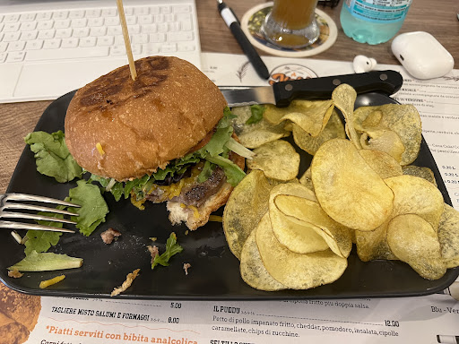 Read moreOttimo posto se si vuole mangiare un hamburger, o comunque cibo su quella linea, di qualità senza dover capitare in ambienti più formali; secondo me è un un misto tra fastfood e slowfood, c'è il servizio al tavolo ma il locale è molto minimal, tavolini piccolini, il cibo servito sui vassoi. Per fare un paragone, OldSquare poco distante è più ristorante in tutto e per tutto; I prezzi sono giusti per chi vuole un panino comunque buono. Penso che usino i potato bun quindi molto morbidi e scioglievoli, la carne è molto buona e anche la composizione del panino (ci mettono tanta cura); abbiamo provato anche le palline fritte di philadelphia ed erba cipollina, clamorosi in ogni senso, panatura iper croccante e buon sapore con l'erba cipollina, porzione abbondante. Altra cosa che abbiamo assaggiato, gli anelli di cipolla, quelli un pochino più deludenti perchè, errore nostro, ce li aspettavamo panati come le palline di philadelphia, invece erano impastellati e risultavano più morbili.