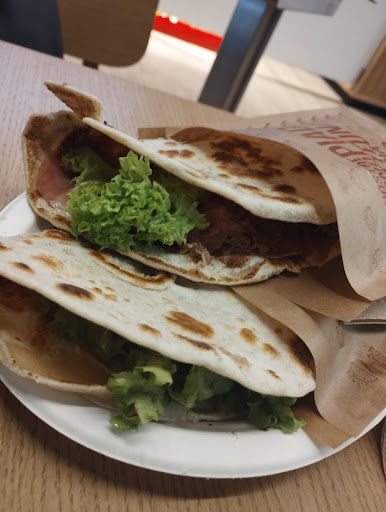 Read moreSembrava un posto carino per mangiare leggero e veloce e infatti è risultato così. L'ordinazione è semplice e veloce come al Mcdonald's, si può ordinare dai tabelloni, dall'app o al banco tradizionalmemte. L'attesa è minima, i pasti arrivano subito. La piadina è molto leggera, non risulta per niente pesante da rovinarti la giornata al centro commerciale. Una nota negativa è che le Piadine hanno pochi igredienti e quelle che hanno verde, hanno più lattuga che altro e questo rovina molto il sapore, e nella piadina che ho preso io la salsa maionese si trovava solo alla fine, mi aspettavo di trovarla in tutta la piadina, è stato deludente. Una nota positiva è il ragazzo che si occupa delle pulizie che è sempre disponibile per pulire i tavoli, rendendo il posto...