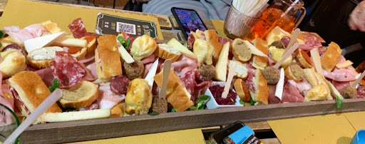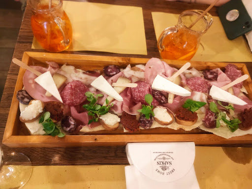 Read moreSi trova alla fine del corso Vittorio, ideale per un aperitivo. In particolare è possibile scegliere tra l'opzione al costo di 6€ comprensivo di drink e stuzzichini oppure 10€ comprensivo di tagliere e drink. Abbiamo scelto l'opzione da 10€, lo spritz ben fatto è servito in una caraffa , il tagliere molto buono comprensivo di salumi, formaggi e crostini su un pane croccante. Decisamente ottima la qualità. Come specificato nel menù (ma non nella lavagnetta fuori) al costo dell'aperitivo si aggiunge in cassa il 10% del servizio. Consiglierei di aggiungere questo dettaglio anche nella lavagnetta fuori per una maggiore chiarezza verso il cliente che se ordina senza verificare il menù ma solo basandosi sulla lavagna esterna, si accorge del costo del servizio solo in cassa Molto gentili e...