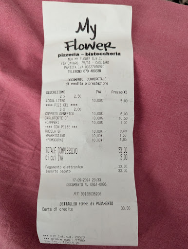 We wanted to try New My Flower since friends thought of it when we were here last year due to my needing gluten free options. Man.gia has been our go-to for GF pizza since trying them last visit, but the very mixed reviews and generally lower prices at New Flower enticed us in for a try. I'm really not sure where all the ire comes from in some of the reviews - perhaps there is something I'm missing, some history or something. It is very loud in the restaurant and they could probably easily ameliorate some of that by hanging some sound dampening panels from the ceiling throughout the restaurant. They have put some panels flat on the walls, but they seem to be ineffective. Otherwise, the interior is quite inviting. I especially like the lighting. There are many options from their simply-presented menu, and the food came in good time. All staff were friendly and helpful, even on a busy night with a 20-top table and even when we were the last party to leave at closing. Now, for the pizza: my friends enjoyed their glutinous pizzas and the honest price. My partner and I tried two of the GF pizzas and thought the crust was pretty good for the style that it is. All the pizzas are thinner style, rather than more doughy. I found that GF dough to be chewy, and almost a bit gummy, which is not my favorite, but it certainly wasn't bad. I'd say it was about 7/10, which, to me, means that I would recommend others try it but I wouldn't say that it is a must-try for anyone coming through Cagliari. For comparison only, I do highly recommend that everyone go to Man.gia if they visit Cagliari (or to Pinocchio if they go to Nuoro - note that they are not GF). All together, the experience and food etc. amounts to a 7.5/10 for me. I was a little less enthused after we got home and looked at our total price, but I try to leave that aspect up to others to interpret on their own. Overall, better...
