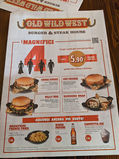 Read moreHo voluto riprovare l'esperienza all'old wild west dopo tanti anni dopo esserci stato al centro commerciale delle vele. La mia valutazione è abbastanza positiva anche se alcuni aspetti non mi hanno convinto. Iniziamo dal locale che è abbastanza ampio, con una buona gestione degli spazi e con la possibilità di distanziarsi senza alcuna difficoltà. Il tema western fa da padrone anche se è rovinato, almeno a mio parere, da un fastidioso effetto buio che per chi ha problemi visivi porta a rendere complicato anche la lettura del menu. L'offerta è davvero variegata anche se i prezzi mi sembrano leggermente sovrastimati. Il servizio è davvero sollecito e puntuale pur apparendo poco familiare e molto più industriale visto che il personale sembra poco appassionato e divertito. Ho puntato ad un panino con un doppio hamburger, "Toro seduto", che non si è presentato troppo bene almeno nell'aspetto, visto che il pane appariva sfatto. L'hamburger invece era veramente gustoso e saporito visto l'apporto delle salse e della qualità della carne. Bocciata invece la birra cruda della Peroni che non rappresenta per nulla il mio gusto ma che soprattutto appariva quasi annacquata. Pertanto il mio giudizio è un misero tre su cinque. Ottima invece la gestione del Covid all'interno del locale con personale rigorosamente con la mascherina e distanziamento assoluto tra tavoli ed anche tra gli stessi...