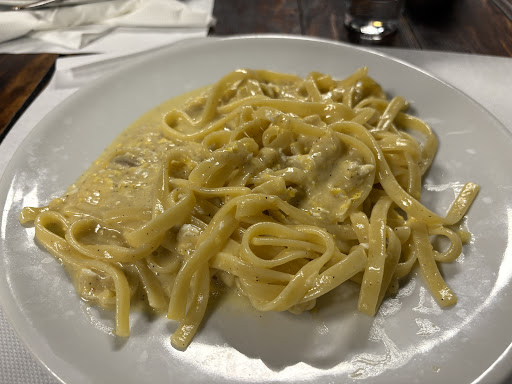 The menu looked interesting. However, overall we were disappointed. We went for pasta (tagliatelle), which we found not hot enough. Mine was tagliatelle alla carbonara, which did not give me the feeling of carbonara - the egg within appeared scrambled. My wife’s pasta, which was again something prepared with tagliatelle, was however better. The red house wine was smooth. The list of dessert looked interesting, however there was no place left in our stomach, as we do not like wasting food and finished what we were served.