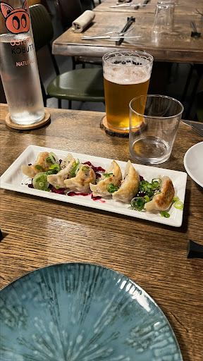 As we walked in, we immediately noticed a bad musty smell. We got seated and as we ordered the drinks the waiter told us that what we ordered wouldn’t be enough, which was very weird, but we didn’t ordered more. Three of us wanted a Coke Zero but he talked some stuff we couldn’t understand for a while (as if they only have cola from a different brand), but in the end he brought three regular coke zeros. All of us thought that he was a bit strange and unpleasant. After getting the drinks we waited at least 20 minutes for one of the three waiters to take our order. We tried to talk to them twice, but they didn’t noticed or ignored us. Two of them even had a private conversation behind the bar for minutes while we were already waiting for a long time. The guests can have a look into the (open) kitchen which was kinda nice and the chefs seemed to have fun. Ok, then eventually the strange waiter came and told us again that we aren’t ordering enough, because the portions are small. Again, we didn’t changed our order. One of us has celiac disease and he didn’t made it clear if one of the meals had gluten or not and handled the situation kind of unprofessionally. We had to ask the other waitress about the ingredients and she helped us and talked friendly. Except one more expensive (beef) dish, they were surprisingly more on the average-“cheaper” side. The dishes came and they looked truly amazing, with some fancy vegetables, but sadly the taste wasn’t nearly as good as we expected it to be. One exception were the gyozas - they tasted perfect! My vegetarian ramen was the baddest soup I have ever eaten. The broth tasted like nothing. The only thing that was outstanding was the boiled egg which was marinated. We expected Asian taste, but the spaces of the vegetarian Yasai Curry (two of us ordered that one) was similar to African or Arabic cuisine. The taste though was not intensive and the vegetables overly cooked to the point that they fell apart. The beef dish had the size of a starter/appatizer and was too salty. The only good thing was the soft consistency of the beef. But all the other dish sizes were definitely enough. When we left, nobody said goodbye.