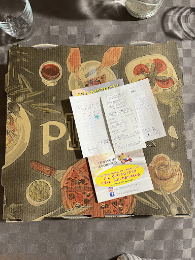 Partiamo dall’inizio: chiamiamo alle 19:50 per avere le pizze a domicilio alle 20:15. Nonostante il poco preavviso la consegna avviene in anticipo (fornendo scontrino, comanda e menù) a costo zero (si paga infatti 1€ solo se si ordina una pizza). Una nota sui cartoni: oltre che essere esteticamente gradevoli (certi hanno stampe da far paura), all’interno erano provviste di un foglio per assorbire l’olio in eccesso ed evitare di macchiare.