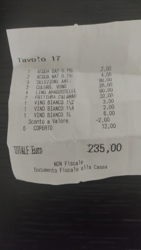 Read moreOwner/waiter tried to pad our bill by 20 euros: 1 bottle of prosecco instead of 1 glass, 2 pastas instead of 1, 2 coffees instead of 1, etc. Tried to hide the total before I tapped my card. No menu with prices made things difficult because we don't speak italian (which is probably why she tried to cheat us). Otherwise very good service and nice patio, antipasti was completely too much (6 plates of different seafood,...