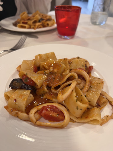 Abbiamo preso 2 antipasti, insalata di polpo che era freschissimo e tonno marinato con arancia e rucola, il tonno gustato con l’arancia un sapore fresco e saporitissimo ne avrei mangiato a chili, marinatura perfetta persino le verdure di “sottofondo” erano gustosissime!! Un piacere per il palato!