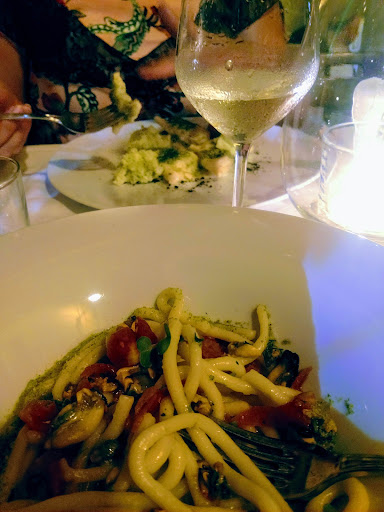 We ordered starters and main, finally we got some wine after 30 minutes there. No follow up during starters, we would have liked to order some more wine with the food. After 30 minutes entres were thrown on the table, but we were not done with starters and still wanted to order wine. The angry waiter cleared the table and we were left with entres but without cutlery or drinks. Entres were good in taste, but the service was the worst we have experienced in Cagliari (or anywhere). Staff was very nice to the French table beside us, so some inexplicable anger towards Guests without reservations must be at the bottomn of it. We were nicely dressed and well behaved, so really no reason for treating us so badly. Total bill of 100 euro was really...