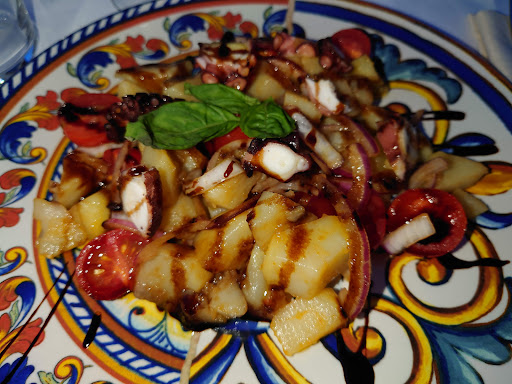 Read moreAggiornerò la recensione se ci dovessi tornare un'altra volta, ma comunque scrivo la mia impressione sulla serata che ho passato: indeciso su cosa ordinare ho chiesto consiglio al personale, in questo caso un ragazzo molto gentile ed educato che mi ha consigliato un piatto rispetto ad un altro ed ho ordinato questo piatto (che vedete in foto). Dopo una cospicua attesa, il piatto è arrivato, inizio a mangiarlo e mi accorgo che per essere un antipasto di pesce, di pesce c'è veramente poco... C'erano si e no 5 pezzi di polpo contati (che si vedono in foto) tutto il resto erano solo patate, cipolle e qualche pomodoro ciliegino... Sono rimasto un attimo deluso per la quantità che in altri luoghi (soprattutto per lo stesso prezzo) c'è sicuramente più pesce(in questo caso il polpo)! Non vorrei fare il pignolo, ma tra l'altro un pezzo era pure abbastanza duro ma tant'è. Oltre a questo riconfermo la cordialità del personale e e aggiungo che la bontà del cibo, per quanto riguarda la pasta e la pizza(mangiata solo quest'ultima, per la pasta riferisco la soddisfazione generale dei miei colleghi) ha soddisfatto tutti, abbiamo infatti ordinato (eravamo una tavolata di colleghi quindi eravamo poco più di una decina di persone) delle marinare per stuzzicare e poi vari tipi di pasta, tutti soddisfatti. (A parte me, non mi è andato molto giù l'antipasto di pesce). A fine cena abbiamo chiesto un limoncello (e nemmeno tutti quanti i presenti) e abbiamo dovuto pagarlo, solitamente è offerto, ma questa è una scelta personale di ogni ristorante, però per quello che abbiamo speso, io in prima persona, pensavo fosse offerto.