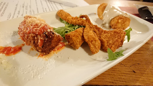 Read moreAllora: carina la location, belli i tavoli di un robusto (7\8 cm.) di castagno massello. Personale gentile ma non professionalmente preparato. Il vino della casa appena sufficiente dal sapore acidulo e leggermente di "spunto" ad un prezzo esageratissimo.... 8€ al litro!!!! Il loro piatto che propinano con grande enfasi, (spaghetti alla giovanniello) è stata una delusione totale, prima di tutto il sughetto sapeva di bruciato (probabilmente il cuoco o chi per esso si era distratto un po'). I spaghetti erano inzuppati di olio. L'antipasto 15 euro era composto da: due fettine di soppressata (duretta per verità) 2 fette di prosciutto (nella norma di qualità) , due fettine di capicollo (questo veramente buono), una fetta di mortatella tonda, due piccoli pezzetti di formaggio (non proprio entusiasmanti) due cucchiai di ceci al sapore di baccala ma del pesce sinceramente se ne vedeva veramente molto ma proprio molto poco, la scamorza affumicata al tegamino era appena tiepida ma comunque gustosa, i due cucchiai di sottolio di scarsa qualità (tipo giardiniera pugliese). A questo punto (eravamo in 4) non abbiamo osato di ordinare secondi e dolci e ce ne siamo andati pagando il conto di 84 euro per un totale di due antipasti e quattro primi......STOP N.B. nel prenotare ci avevano detto che il menù era alla carta, ma non era vero, giacché sul foglietto riepilogativo del menù cerano: tre tipi di antipasti, tre primi a scelta e tre secondi. Premetto per onestà che il giorno scelto per recarci a pranzare era il lunedi...