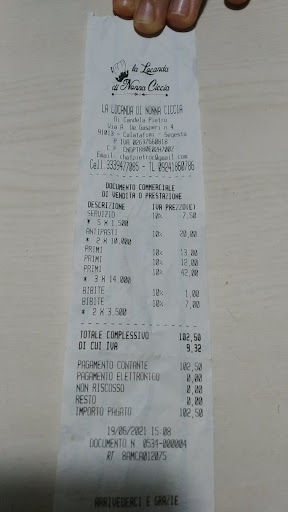 Chi le scrive è uno dei commensali che sabato scorso era seduto nella stessa tavola delle due signore che le hanno, prima di me, scritto una recensione e se sento il bisogno anch'io di lasciare un commento e soprattutto di intervenire con un mio pensiero è solo perché chi legge le recensioni sono clienti che come me quando si recano in un bar, trattoria, ristorante o qualsiasi tipo di locale, si aspettano di mangiare bene e spendere il prezzo più confacente a ciò che si è mangiato (non spendere poco come insinuato da lei, anche perché si può avere arte culinaria anche nel preparare un semplice panino e non sempre in un piatto di pasta), nelle due recensioni precedenti non è stata criticata la qualità delle sue portate né tantomeno la quantità , ma è stato espresso un parere sul prezzo di ciò che è stato consumato, giudizio che è leggittima espressione della facoltà di opinione del cliente, ma lei anziché accettare la critica, come si addice ai veri ristoratori, o dare una giusta spiegazione al conto del pranzo, ha ritenuto opportuno insultare e mistificare la realtà dei fatti, infatti il conto era di 102,50 euro e non di 92 euro, come raccontato da lei, a riprova di ciò allego la foto dello scontrino, affinché i futuri clienti possano conoscere la realtà dei fatti e la saluto dicendole di non disturbarsi a rispondermi perché nonostante quello che potrà dire, ha già dimostrato di essere,oltre che un bugiardo un...