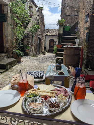Read moreBeh, trovato per caso, gironzolando in un borgo tra i più belli in Italia: Calcata. Il Guazzabuglio è pervaso da una magia particolare. Varcare il suo ingresso è stato come entrare nell'armadio di Narnia. Ho conosciuto Veronica, di rara bellezza, un fiore cresciuto nella roccia della Sila. Talmente determinata e coraggiosa da riuscire ad aprire con successo questo posto incantevole in un momento di grave congiuntura. Sebbene da solo, nonostante ci fosse la fila, mi ha trovato un tavolo. Ho mangiato divinamente: una pizza con verdure e crema di pomodori secchi, eccellente. Anche il dolce era delizioso, gigantesco. Non bevo mai ma ieri 'festeggiavo' qualcosa di mio ed ho veramente esagerato con un ottimo Cesanese. Il fatto è che mi sono seduto alle 13 ma ho conosciuto prima Veronica, poi Alessandro, l'architetto Gabriella, Laura... Abbiamo parlato ore ed è un evento raro di questi tempi. Persino due risate con la bravissima chef... In serata una famiglia che sembrava scesa da un Caravaggio... A momenti mi è sembrato essere in un confortevole ed accogliente vagone del Trans Europe Express. Ebbene, mi son dovuto imporre di andarmene perchè davvero ci avrei fatto chiusura. Ci devo tornare assolutamente anche perché ha diverse scelte vegetariane. Qualità molto alta. In tutti i sensi....
