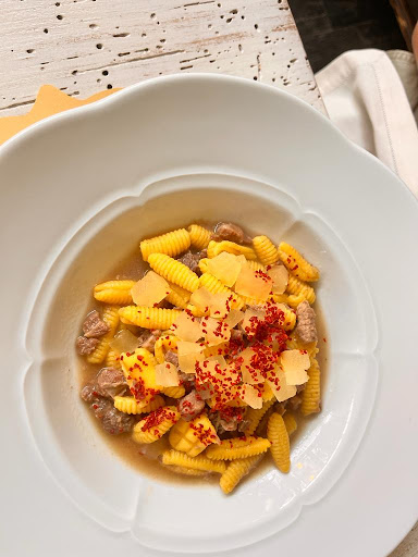 Purtroppo è stata un'esperienza negativa. Quasi tutti i piatti che abbiamo ordinato presentavano difetti imperdonabili (abbiamo pagato 235€, circa 60€ a persona, per 2 antipasti, 4 primi, 3 secondi, 2 dolci e 1 bottiglia di vino rosso Bolgheri da 36 €). Mi limito a descriverne tre. Tagliolini al limone con zafferano e petto d'anatra stagionato croccante: i tagliolini mi sono stati serviti rappresi e la guarnizione del petto d'anatra stagionato era eccessivamente sapida ed ha reso sgradevole il piatto; Ventagli di pasta ripieni di patate con ragù bianco di faraona salsa all'aglione e polvere di Santoreggia: i Ventagli erano di buona fattura; peccato però che galleggiassero su uno strato di acqua (perché non adeguatamente scolati) ed il condimento fosse quindi annacquato; Gnocchetti di farina con ragù di maiale, salsa alla cipolla, peperone crusco e mela...: idem come sopra (gnocchetti che "galleggiavano" nell'acqua - allego foto) e piatto completamente "slegato" di sapori Avrei da fare qualche nota negativa anche per un antipasto e 2 secondi ma concludo osservando che, pur evidenziando al cameriere i difetti riscontrati, avrei gradito un gesto di attenzione con un conto "decurtato" (anche solo simbolicamente). Non amo proseguire con dei "botta e risposta ( d'altronde questo è l'aspetto negativo dei social) ma mi permetto di replicare alla sua risposta. Non ho nessun livore glielo assicuro...Lei mi ha chiesto una spiegazione alla votazione e io ho cercato di dargliela: le suggerisco di fare buon uso di quelle che sono semplici critiche e che potrebbero essere spunto per migliorare il livello qualitativo del suo locale. Giustamente lei mi fa notare che non ho rimandato indietro nessun piatto e non ho fatto nessuna critica: è vero! Forse perché sono abituato così...credo si possa chiamare "educazione" come quando si è ospiti in una qualsiasi famiglia o da amici: mi sembra cioè inappropriato fare piazzate o discussioni che contribuirebbero semplicemente a rovinare una giornata di festa con le persone che sono a tavola. Lei mi fa notare che siamo rimasti un buona mezz"ora a discorrere piacevolmente nella vostra veranda: è vero anche questo ma è proprio il motivo per cui ho dato 4 stelle alla vostra location. La questione del conto: ci tengo a precisare che abbiamo scelto il vostro locale non per spendere poco ma per mangiare bene ! Purtroppo non è andata così e mi dispiace...