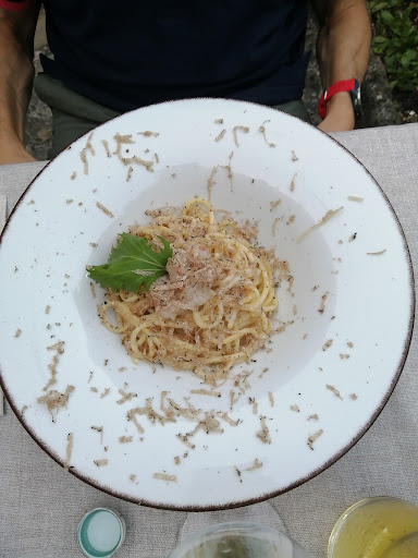 Read moreSiamo stati a cena in coppia sabato scorso, il luogo è molto particolare e accogliente, edificio antico curato nei dettagli, molto bella sia la sala interna che la piccola corte, fresca e abbellita da tanti fiori. Il menù di pesce è ottimo, materia prima di qualità cucinata in modo superlativo, abbiamo preso antipasto misto (cacciucco delizioso), spaghetti allo scoglio, grigliata mista e il titolare ha insistito (a ragione veduta) per farci assaggiare il fritto, buonissimo e super leggero. Per finire sorbetto al limone e crema di mascarpone con pistacchio (già solo questa vale la strada!); il tutto accompagnato da un ottimo vino bianco di cui non ricordo il nome, ma sempre consigliato dal titolare. Prezzo assolutamente adeguato alla qualità e quantità delle pietanze. Personale giovane, ma molto gentile e attento. Quella sera anche il titolare serviva in sala (di solito fa le pizze) e ha dimostrato attenzione e cortesia per ogni tavolo, anche se il locale era pienissimo.Torneremo...