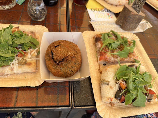 Read moreVery friendly staff and pleasant outdoor seating. They offer a few starters and salads next to their pizzas, which are sold per piece or as a whole (equivalent to 4-5 pieces). The base (dough) is pre-cooked and ingredients are added in a second step once you order which means that the pinse listed on the card are more like suggestions and can be adapted as per your preferences/needs. In our case, they were able to adapt both one of their salads and pizzas to suit a vegan diet. The pinsa is not as crispy as the original Roman one but very good nonetheless. The squid ink arancino was also...