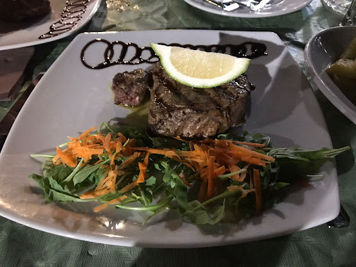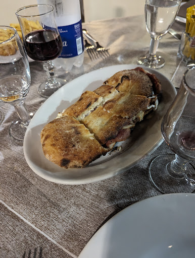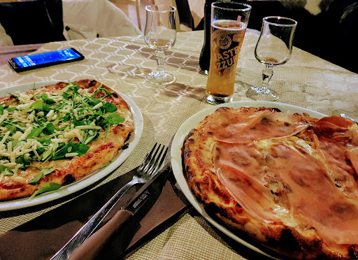 Esperienza molto gratificante. Premetto che abbiamo assaggiato la cucina e non la pizzeria di questo luogo. Location molto accogliente ed elegante, unica pecca la discesa (poi salita) molto ripida per chi parcheggia sopra, ma non per questo possiamo abbassare di una stella la fantastica esperienza. Appena giunti (prima volta in questo luogo) ci hanno accolto con molta serietà e disponibilità e, non appena accomodati al tavolo, immediatamente viene un cameriere (il locale era pieno, quindi non ci aspettavamo un servizio veloce) che immediatamente porta menù e chiede cosa volessimo da bere. Immediatamente scegliamo cosa mangiare, il cameriere porta le birre e, prima di ordinare, gli porgiamo una domanda per scegliere con certezza. In questo abbiamo notato la pecca dell'inesperienza del ragazzo (sicuramente stagionale), ma comunque ordiniamo un antipasto all'italiana, una scottona a testa e patate a forno come contorno, accompagnate, appunto, da due birre. L'antipasto è stato formidabile, salumi e formaggi di ottima qualità e freschezza, olive e pomodori secchi gustosissimi. Dopo l'antipasto, circa 15 minuti, giunge la carne (in foto) spessa circa 3 cm per circa 300g di pura goduria. Cotta in modo impeccabile, delicatissima e gustosissima, e non dobbiamo lasciare in secondo piano le patate a forno di contorno, erano buone in stile "quelle della nonna che son sempre le migliori". Insomma, location molto carina, servizio attento, veloce e cortese (nonostante la folla), cucina spettacolare (torneremo per provare il filetto di 1kg), conto abbordabile (69,00 € per 3 birre alla spina da 0,40cl + 1 da 0,20cl, un antipasto all'italiana, 2 piatti di scottona e due contorni di patate a forno). Consigliatissimo. E, soprattutto, consigliata la...