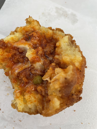 Omg a perfect arancine! Arborio rice with saffron, beef in ragu with cheese and a few peas. Molto buono! So glad we chose a quick lunch/pranzo today (of Sicily’s best fast foods)after the waiter brought us free appetizers of focaccia stuffed with ragu and mushrooms, another with spinach cheese, and twists of bread with eggplant and tomato, free with our appertivo. Check out the pizza with French fries, pigs in a blanket (this area of Sicily loves hot dogs lol) and I had to stop myself from that mortadella and burrata or the panelle 😋🤤 they also have full bar...