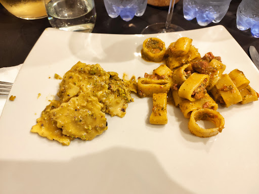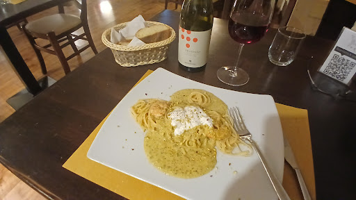 Il titolare si distingue per la sua simpatia e professionalità, rendendo l'esperienza culinaria ancora più piacevole. Il menù propone una varietà di piatti che combinano tradizione e innovazione, tutti preparati con ingredienti di alta qualità. In particolare, il primo con pesto di pistacchio e guanciale è un'esplosione di sapori ben bilanciati, mentre gli involtini si distinguono per la loro tenerezza e gusto.