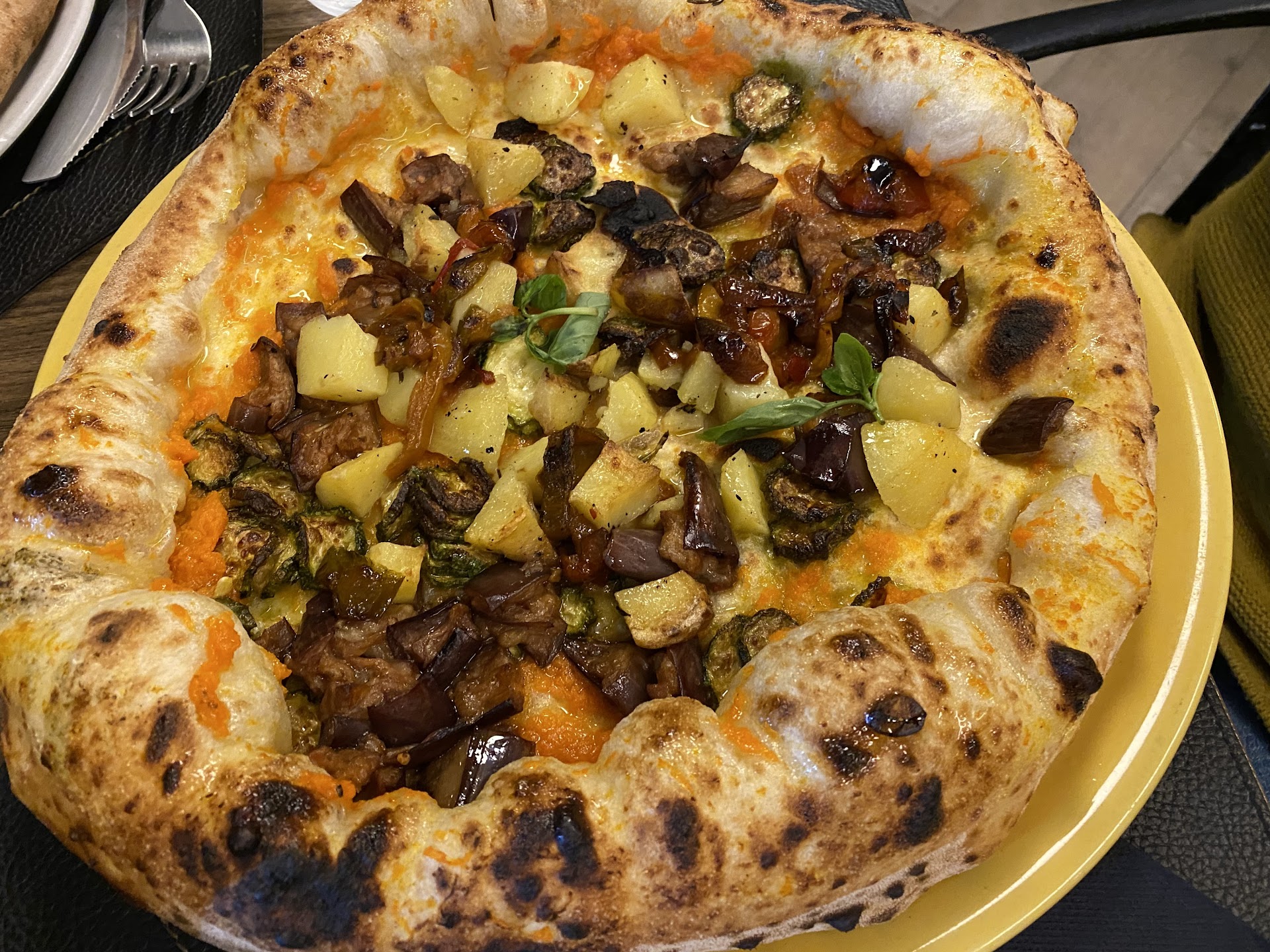Avevo buoni propositi per questa rinomata pizzeria, ma purtroppo sono stati quasi tutti solo negativi. Partendo dal fatto che ho prenotato un tavolo per le 21, arrivo addirittura (mea culpa) con quindici minuti di ritardo e il tavolo non era ancora pronto... Mi hanno fatto aspettare fuori qualche minuto e alla fine mi hanno dato un tavolo che non doveva essere mio, visto che avevo chiesto al chiuso e me l'hanno dato all'aperto - i tavoli tutti ammassati tra di loro - probabilmente perché quello che sarebbe dovuto essere mio era occupato... Ovviamente non viene chiesto alcun green pass o vengono prese altre misure di sicurezza (il tavolo era all'aperto, ma loro l'hanno saputo solo dopo, avrebbero dovuto chiederli all'ingresso...) Mi siedo e dopo dieci minuti (o più) di attesa vengono finalmente a prendere le ordinazioni (parlo in prima persona, ma era un tavolo di otto persone). Vengono ordinate sei pizze (attenzione: una viene chiesta senza fior di latte), una porzione di patatine con polpettine e una frittura di pesce mista: chiediamo e sottolineamo di far arrivare tutto allo stesso tempo, per evitare di mangiare chi prima e chi dopo. Dopo dieci minuti arrivano tutte le pizze: inutile dire che quella senza fior di latte arriva col fior di latte... Ovviamente chiediamo di rifarla. Passano minuti e minuti, gli altri due piatti non arrivano e le due persone guardano noi mangiare. Dopo più di venticinque minuti arriva una misera porzione di patatine e polpettine. Dopo più di quaranta minuti (intanto tutto il tavolo aveva pure digerito praticamente) arriva la famosa frittura di pesce (chiamarla tale è un complimento, considerato che c'erano cinque anelli e quattro gamberi. Chiedo spiegazioni e dicono grossolanamente che le ordinazioni delle pizze vanno in pizzeria e le altre in cucina, quindi cercano di preparare le cose nello stesso orario: e menomale! La cosa che fa più rabbia è stata vedere che tutti gli altri tavoli venivano subito serviti, anche con primi piatti o secondi più particolari, mentre per friggere due patatine e una frittura di calamari (ovviamente surgelata) ho aspettato quaranta minuti. Tuttavia, la pizza è buona e il cameriere che mi ha servito è stato molto cordiale. Peccato, potrebbe avere del potenziale, ma...