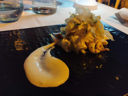 Read moreAspettative alte ma non ci siamo. Abbiamo chiamato alle 21, chiedendo disponibilità per due persone per le 21.30. Arrivati ci viene apparecchiato nella terrazza pubblica e già avevano molte persone in altri tavoli. Ordiniamo due antipasti, I moscioli e la tartare di gambero con tartufo (molto buona) uno gnocco da dividere e una frittura. Antipasto arrivato veloce e cameriera molto disponibile e presente. Finito l antipasto abbandonati totalmente per un ora e mezzo. Dopo la lunga attesa è arrivato lo gnocco sfatto, riscaldato con sembianze simili a purè in litri di olio. A tal punto abbiamo deciso di eliminare la frittura visto che era già tardi e vista la situazione, I pochi camerieri erano troppo impegnati per una altra tavolata di molte persone. Ci alziamo ed andiamo a pagare ( volevano comunque almeno un dolce o un caffe) ma nessuno aveva l’interesse nel proporci qualcosa o per rimediare al tutto. Ci dispiace Perchè inizialmente la cameriera era stata molto carina con noi ma ci hanno dato la dimostrazione di essere persone non professionali. Siamo una coppia che lavora ormai da tanti anni...