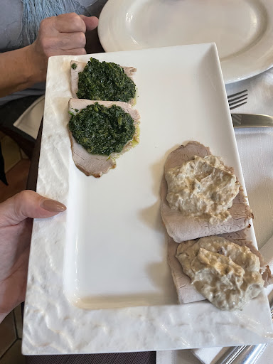 Read moreSono stato questa sera a mangiare per il cenone di Capodanno... Hanno organizzato una cena con delitto durante il cenone... Sul gruppo intervenuto con lo spettacolo nulla da dire... Sul cibo mi sento di spendere parecchie parole... Innanzitutto... Gli antipasti sono stati scarsi (una fettina di pane con gorgonzola e noci perché non mangiavamo pesce, 1 gnocco fritto a testa con 1 fetta di prosciutto crudo e 1 fetta di salame), una tartare di fassona minuscola, due pezzettini di formaggio)... Come primi c'erano tagliolini al fondo di brasato o un'altra pasta fresca con burro e salvia (ma la cameriera ci ha detto che dovevamo scegliere lo stesso piatto, in quanto non potevano creare più piatti diversi)... Optiamo per i tagliolini (che ci vengono fatti in alternativa al risotto con i gamberi... Di solito ai cenoni ci sono almeno 2 piatti di primi... Il secondo di carne consisteva in una fettina di carne di vitello, una fettina di brasato e una fettina di rollè, patate (3 di numero) e insalata di guarnizione... A mezzanotte una fettina minuscola di cotechino con due cucchiaini di lenticchie... Fetta di panettone con crema al cioccolato o al mascarpone... Ok, nel prezzo era compresa la quota della compagnia, ma uscire da un cenone di Capodanno, dopo aver speso 100 € a persona, e avere il desiderio di mangiare qualcosa di sostanzioso perché no okn hai mangiato a sufficienza mi sembra assurdo... Lo sconsiglio per questo tipo di eventi, in quanto non si mangia a...
