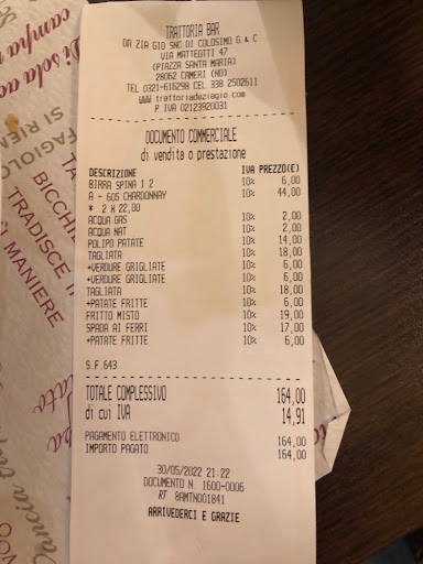 Read moreA malincuore devo modificare le 5 stelle precedenti per il rincrescioso avvenimento di stasera che dopo circa 15 volte che veniamo in questa trattoria mi sono visto offendere la mia persona senza nemmeno sentirmi rivolgere le dovute scuse. Ma stasera e stata troppo l'offesa dopo aver ordinato orecchiette alle cime di rape mi sono visto recapitare spaghetti alle cime di rape. MA SE VOLEVO GLI SPAGHETTI LI AVREI CHIESTI, ho fatto presente alla cameriera che non solo gli spaghetti non c'entrano un cavolo con le cime di rape ma che volevo le orecchiette e che le orecchiette non c'erano, come a dire mangia quello che ti porto. E pure non siamo clienti qualunque visto che ci frequentiamo da tempo e che non facciamo solo menù fisso ma che mangiamo quello che ci piace senza badare al prezzo. Avvisato Il proprietario si giustifica senza che si è distratto senza rimediare. Ma non c'è problema perché per la fame ci siamo fatti scendere anche gli spaghetti alle cime di rape sperando che Lino Banfi non me né voglia a male ma se a voi non fa piacere prendere clienti figurati noi a cambiare trattoria. Zia Gio non si è nemmeno degnata di scuse ma fa niente abbiamo le spalle larghe e siamo ben educati a non fare casino e magari rifarvi riportare il piatto in cucina...