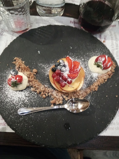 Read moreUNA SORPRESA GRADITISSIMA! Che sorpresa la Trattoria dalla Zia Giò! Scoperto per caso sul consigliere di fiducia The Fork, è un localino piccolo ma accogliente nella triste Cameri, cittadina a pochi km da Nuàra, capoluogo dell'omonima provincia. Devo dire che non lo avevo mai preso in considerazione visto che, oltre a non conoscerlo, è ubicato fuori Novara e dai classici giri, ma sono contento di averlo scoperto! Zia Giò è un posto informale caratterizzato da piatti tipici a prezzi veramente ottimi e aperitivi top (vi verrà servito, a 9,50 a testa, drink e tagliere con varie sfiziosità davvero enorme, praticamente ci potete direttamente cenare, se poi ne volete altro è previsto un supplemento; solo il Negroni diciamo che non era propriamente all'altezza, forse sono meglio le birre). Il servizio è assolutamente attento e il personale cordiale. Il menù non è vastissimo ma si caratterizza per numerosi piatti tipici della cucina novarese e dintorni, tra cui i famosi agnolotti del plin, brasato e tapulon (una sorta di bruscitt ma d'asino). Io ho preso i ravioli del plin piemontesi con riduzione di sugo d'arrosto di carne Fassona e il tapulon d'asino con la polenta. Entrambi i piatti erano molto buoni e ben fatti, oltre che ad avere porzioni abbondanti - ma non troppo - che ti saziano: tapulon non esageratamente saporito e polenta grezza, plin artigianali, cotti bene e ripieno piacevole al palato, molto buoni e vicini a quelli superbi assaggiati a Torino da "Alle Volte" (che ho recensito poco fa). Ottimi anche i dolci. Vino fatto da un amico del titolare che può o meno piacere, io l'ho trovato buono. Insomma, ne vale veramente la pena venire ad assaggiare i piatti della Giò, soprattutto anche per i prezzi, meno elevati del consueto. Complimenti!