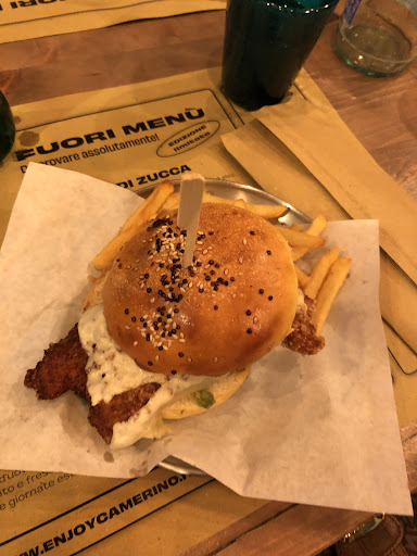Read moreUn posto indubbiamente frequentato, soprattutto qui a Camerino dove non c'è molto.... Il locale è molto colorato, carino e colmo di musica (alle volte un po' troppo alta). La scelta è molta tra panini, fritti e pizza, con la possibilità di personalizzare alcune di quest'ultime. Hanno piatti anche "limited edition" e in generale i sapori sono ben abbinati. La pecca arriva nel servizio / cucina: molte volte l'ordine arriva sbagliato o cotto male (pollo crudo anche no, grazie). Inoltre i tempi di attesa, a prescindere dal numero di persone sedute, è di circa 45/50 minuti abbondanti. I prezzi si sono leggermente alzati rispetto al passato (~1€ in più a piatto) ma, comunque, nella media.