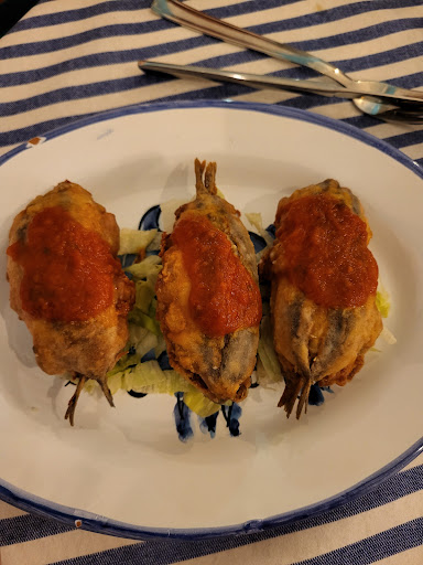 Read moreColpito dalle recensioni e dalla formula, ho prenotato in questo locale in cui il proprietario propone pesce fresco della giornata. La quantità di scelta è in linea con la filosofia di un ittiturismo, ma il modo in cui il pesce viene cucinato, il rapporto qualità prezzo e qualità del servizio è lontano dalla sufficienza. Abbiamo ordinato 2 antipasti in 3 obiettivamente dimenticabili: di positivo abbiamo rilevato un polpo tenero ma nessun sapore è rimasto scolpito nella nostra mente. Anzi, la quantità poco abbondante ci ha sorpresi. I primi: spaghetto al nero di seppia buono, seppia morbida e sapore gustoso. L'altro primo, fusilli (eliche) alle alici di menaica piatto insulso, per niente amalgamato, anemico persino alla vista, insapore. 2 piatti per la bellezza di 26 euro (13x2)! Avremmo dovuto farlo sostituire, ma nella sala il caldo era insostenibile e non vedevamo l'ora di andare via. Abbiamo chiesto al proprietario di abbassare un pò la temperatura interna già deumidificata, ma non ci è stato concesso. Il prezzo (84 euro totale per 3 persone e avendo mangiato due antipasti, 3 primi, 2 acque e 2 liquori, senza vino) non è in linea con il tipo di servizio, con il tipo di cucina offerta in termini di qualità e quantità e con la mission che il...