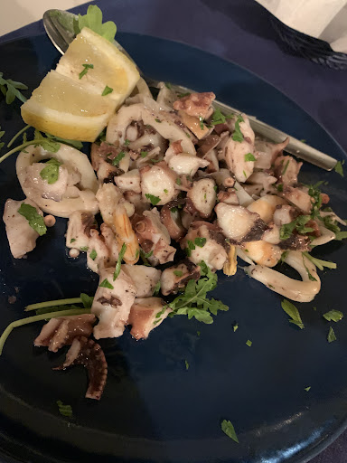 Read moreIl padrone sembra un ragazzo giovane e molto gentile, abbiamo seguito i suoi consigli ordinando un antipasto di polipo appena pescato e paccheri con la ricciola, mi spiace tanto doverlo dire ma il polipo era un filo gommato e per la ricciola praticamente nel mio piatto non c'era, ne come gusto ne come miraggio, i paccheri erano troppo al dente ma capisco che forse quello è gusto. Hanno portato acqua e visto dovevamo guidare abbiamo preferito una birretta rinfrescante al vino, .....non hanno birre , il servizio però lo forniscono ugualmente comprandole al momento al bar accanto 🤣 bhe se non altro fanno muovere l'economia. Volevamo evitare il secondo perché mangiando praticamente pasta ero un po' piena ma avrei gradito un dolce o sorbetto ..non saprei dirvi se lo hanno o meno perché dopo 25minuti in cui nessuno ci chiedeva se volevamo caffe digestivi o dolci abbiamo ritenuto piu corretto lasciare il posto ad altri. Mi duole dirlo ma un piccolo flop con noi stasera ...PS anche con i vicini di tavolo ..non si fa uscire un primo ad una coppia se ti sei sbagliato con l'altro e lo devi rifare quindi attendere...la signora ha atteso e quindi mangiato freddo per fare la cortesia al suo compagno .PS prezzi un...