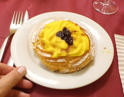 Read moreIn ritardo per pranzo sulla strada che porta in montagna ci siamo fermati per caso in questa osteria. L' entrata ricorda le osterie di una volta con un banco pieno di affettati tra cui spicca una gigantesca soppressa e poi "ovi duri", "nervetti" e "sponcetti" vari. La sala ristorante non si vede dall' ingresso e ci si accede da un angusto passaggio. Arredi datati ma se ristrutturazione servisse non modernizzerei troppo per non snaturare la " poesia". Sì perché per quanto tu possa restare perplesso all' entrata, quando cominci a leggere il menù del giorno rimani impressionato dalla varietà e quantità dei piatti proposti. Tutto casalingo e legato alla stagionalità. Pasta al pesto di cavolo nero, spezzatino all'uva e la frittata alle erbetteee..da quanto tempo non la mangiavo. Non c'era più posto per il dolce ma abbiamo visto servire agli altri tavoli delle cosine apparentemente deliziose. Alla cassa si incontra la signora..una "sagoma" come si dice dalle nostre parti, cordiale, simpatica, con la battuta sempre pronta. Ci ha raccontato che anche Malgioglio sia passato di lì. Dopo tutto ciò ti presenta il conto: primo, secondo, contorno, una bottiglia d'acqua..15€. Cosa vuoi di più dalla vita..un caffè? Beh, anche quello è compreso! Voi non cambiate! Noi torneremo tutte le volte che potremo anche se serve qualche euro di carburante in...
