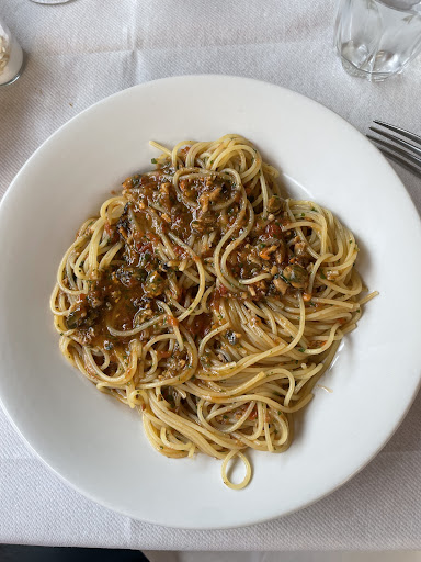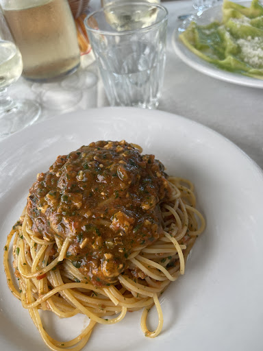 The famous lasagna with pesto was in fact excellent. The chopped mussels with spaghetti were a delight, hot and perfectly emulsified. Highlight was the fritto misto, somehow not oily but still deep fried. The anchovies were so fresh (we watched the owner clean them meticulously in a bucket of ice water) and the shrimp were so excellent we ate them whole.