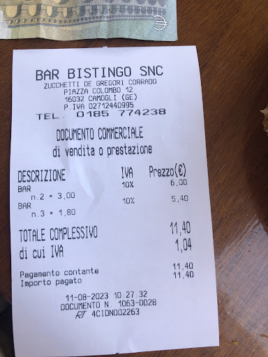 Per concludere in bellezza, lascio a voi la foto del conto per due cappuccini e tre brioches.