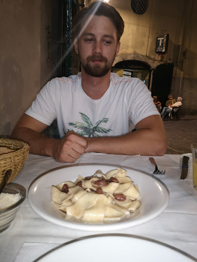 Il mio unico dubbio è cosa sciegliere; il mio pensiero vola dai fusilli ai ravioli, dalle lagane alle ormai rarissime "matasse" cucinate nei modi migliori possibili, con ceci, fagioli, funghi, ragu', pomodoro freso.I secondi sono un viaggio a ritroso nel tempo: braciole di carne e di cotica, polpette, arrosti misti e su tutti gigante lo "sfriuonzolo" o costa riccia come la chiama Roberto che orchestra in sala come il miglior Muti al San Carlo. Le verdure, ortaggi ed il sapore di una volta, la tranquillità e la pace della propria casa che vengo a cercare e puntualmente trovo in questo locale a distanza di 130 km da dove abito. Inoltre Il proprietario è cinofilo anche con Cody. Grazie di esistere. La possibilità di modificare mi consente a mente fredda di parlare anche del baccalà (un po di Somma Vesuviana a Campagna), del pesce cucinato in maniera rispettosa ed ultimo ma non per ultimo il vino che accompagna, slatetizzando i desideri reconditi, antipasti, verdure, carni e pesce. È domenica, è ora di pranzo e sto pensando ancora al sabato consumato a "La...