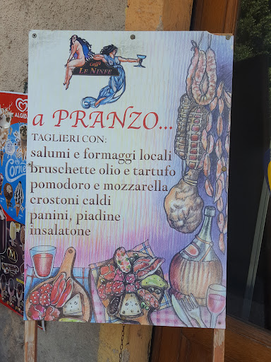 Il Bar Caffè Le Ninfe è un ottimo locale per ritrovarsi a bere un caffè ma anche a deliziarsi con spuntini e cibi gastronomici tipici della zona. Lo staff, capitanato dalla Sig.ra Cristina, è allegro, dinamico e cordiale. Sono presenti alcuni tavoli in uno spazio dedicato pieno di colori e allegria. Il Bar dispone di TUTTI i servizi possibili: tabacchi, Lotto, giornali e riviste, pagamenti con POS e carte di credito anche di tributi, multe, ricariche telefoniche. Insomma di tutto e di più....