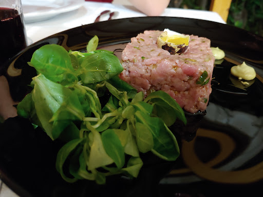 Premetto recensione risalente a giugno luglio 2019 Dopo essere stati al parco del clitunno ed aver aperto i ristoranti nelle vicinanze ... ci hanno colpito le foto di carne e da carnivori come siamo non potevamo lasciarci sfuggire l'occasione di provarlo e dopo la nostra esperiena è impossibile non recensire in modo Eccezionale, eccellente questo ristorante di carne frollate. Abbiamo preso come antipasto delle tartare miste, tra le quali vi era una con le noci e un altra con le cipolle caramellate, La cameriera, una ragazza biondina/castano chiaro, gentile e professionale ha saputo ben descriverci il menu e rispondere alle nostre domande circa la carne, in quanto data la proposta eravamo in dubbi o sulla scelta del taglio. Alla fine abbiamo preso un tomawak tenerissimo 1 kg circa e una Fiorentina di bufalino da 1.2/ 1.3 kg circa sempre tenera ma come mi aveva confermato la cameriera più consistente rispetto alla tomawak di black angus, nonostante tutto ottima data la frollatura. Ulteriore dettaglio la cottura azzeccata (mi piace molto al sangue...al limite del crudo) e soprattuto azzeccata anche la scelta della pietra per mantenere calda la carne, in alcuni ristoranti la pietra cuoce la carne facendola passare di cottura, invece in questo come in pochi altri, la pietra era a temperatura giusta permettendo alla carne di mantenersi calda ma non di cuocere, particolari a cui do molta importanza. Personalmente non ho preso vino, per ragioni di guida, chi era con me ha preso un calice di rosso, buono ma non ricordo cosa, data la zona forse un Montefalco ma non metto la mano sul fuoco. Come dolce abbiamo preso un semifreddo di colore bianco ad un frutto particolare e un tortino al cioccolato. Ottimo entrambi. Il locale dispone di ampio e comodo parcheggio, sala interna ben arredata con sedie imbottite a poltroncine, climatizzato caldo o freddo a seconda della stagione, dov'è presente il frigo per la frollatura a vista, la sala esterna è ben isolata da rumori e quant'altro, sedie miste, sia in plastica e anche sedie imbottite a poltroncina. Lo raccomando oltre che per ottima qualità di prodotti e l'ottimo servizio anche per serate romantiche. Ah un ulteriore punto a favore del ristorante è che la cameriera parla un inglese sciolto, vista in azione con un tavolo di 6/8 turisti inglesi di mezza età, la cameriera gli ha spiegato in modo fluido le pietanze e non ha avuto incertezze nel colloquio alle altre richieste della tavolata. Conto 131 euro scontato a 120, in pratica hanno offerto i dolci. Può sembrare tanto agli occhi dei non intenditori, ma la qualità come in questo caso eccellente, si paga. Detto ciò, lo consiglio a tutti gli amanti della carne vera, non...