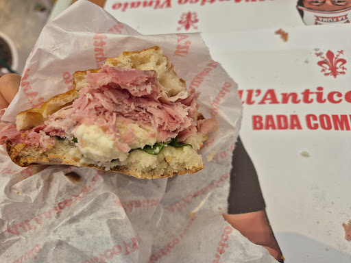 Read moreSiamo stati ad inizio dicembre di sera. Come qualità del cibo siamo a 4 stelle su cinque, decisamente alto livello anche se non strepitoso Perché 2 stelle in meno? Una stella perché ci accolgono con lo slogan "BADA COME LA FUMA" e poi ci servono le schiacciate e le imbottiture fredde... Come dice un mio amico toscano doc, " LA SCHIACCIATA LA DEV' ESSE HALDA E CROCCANTE", quando è fredda si gusta tutt' altra cosa... Un' altra stella in meno per il prezzo: 20 Eur in due per due schiacciate imbottite e mezzo litro d'acqua...Cioè sarebbero le vecchie 40.000 lire per due schiacciate, grandi sì ma non giganti, qui con una schiacciata non si mangia in due come taluni sostengono Loro potranno giustamente dire che il listino prezzi è esposto, ma anche noi consumatori abbiamo il diritto di scrivere che paposciari, schiacciatari, paninari, pucciari, focacciari ecc ecc forse si stanno montando la testa con 'sti prezzi? Cioè, più che paninerie e focaccerie, ormai sembrano gioiellerie: neanche più il gusto di farsi un buon panino imbottito per non farsi spennare dai ristoranti...Mi sembra un cambiamento nella società non da poco, e assolutamente negativo, nel lungo periodo danneggerà sia consumatori che esercenti Vogliono spendiamo 50 mila lire per due schiacciate? Allora ce le facciamo a casa o dove i prezzi sono ancora equilibrati Se ricapiteremo in zona, forse proveremo via del Neri ma, temo non ci sia più il vinaio di una volta, mi avevano...