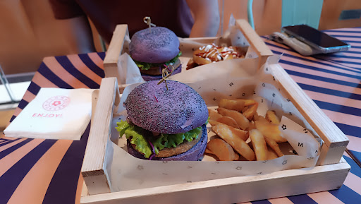 The place immediately catches your eyes with its vibrant and fresh colors. Full vegan meals, all plant based, with burgers so colorful and delicious. The food is fantastic and ordering has never been easier: get in line, order your food, get a pager and wait for the buzzer to go off. Gluten free options for the buns are available and you can also mix n match colors and tastes! Ah... Water is free, both sparkling and natural, they have a tap for it. Recommended for everyone,...