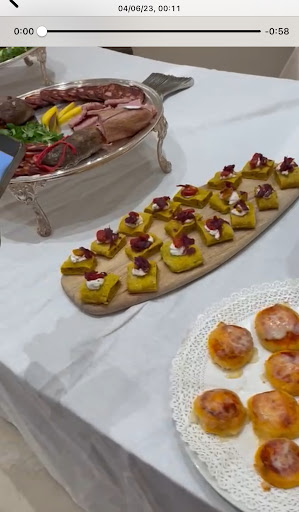 Il buffet iniziale ha saputo sorprendere tutti con la sua ricchezza e varietà, offrendo prelibatezze di altissimo livello. La sala interna, elegante e luminosa, ha accolto gli ospiti in un’atmosfera raffinata, dove i piatti proposti sono stati accompagnati da una selezione di vini apprezzata e ricordata da molti dei nostri invitati.