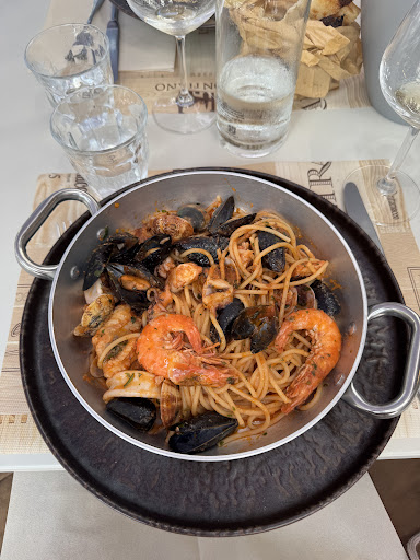 Read morepassati per una veloce visita al paese, ci ritroviamo affamati e ci sediamo sotto la bella ombra del dehors. Menu digitale e difficile per la scelta dato che tutto sembra ottimo. Alla fine optiamo per due primi e un frutto di calamari. Del resto siamo in vacanza e io nuoto. I paccheri sono incredibilmente cremosi e pieni di sapore. Tutto ben bilanciato. Sapori stupendi anche nella spaghetta di scoglio. Ottimo il fritto, quasi ai livelli di una tempura giapponese....