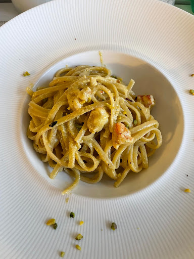 Il primo piatto che abbiamo ordinato è stato un tagliolino al nero di seppia con ragù di calamari. La pasta era cotta alla perfezione e i sapori si fondevano armoniosamente, con il pecorino romano a completare il tutto. Lo staff, attento e premuroso, ha diviso il piatto in due porzioni senza compromettere l'impiattamento, dimostrando una grande cura per i dettagli.
