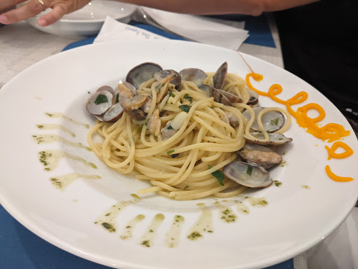 Read moreZERO al servizio: hanno fatto piangere 10 minuti mio figlio e non si sono scusati. 2 bambini e 4 adulti, una bambina ha ordinato il menù cotoletta, mio figlio di 10 anni una pizza, noi adulti antipasti e a seguire 4 primi di mare. Hanno portato la cotoletta alla bambina e a mio figlio niente, hanno portato gli antipasti e a mio figlio niente. La sua amica ha finito di cenare, hanno portato i 4 primi e a lui niente, a digiuno. Inizia a piangere, mi alzo e mi dirigo verso la cassa e il bancone della pizza e gli spiego che il bambino sta piangendo perché noi 5 abbiamo finito di cenare e lui non ha toccato cibo. Il pizzaiolo su scusa dicendomi che gliel'hanno segnato come seconda portata ed io infatti gli spiego che ha sbagliato il cameriere a prendere la comanda e a non accorgersi dopo aver portato menù bimba, antipasti e primi che c'era un bambino al quale non era arrivato niente. Ovviamente non si sono scusati, non ci hanno tolto la pizza o arrotondato il conto, non ci hanno offerto un amaro o qualcosa al bambino che ha mangiato la pizza da solo mentre noi prendevamo il caffè. Non conoscono le basi della ristorazione e dello stare al pubblico. P.s. tanti piatti con prodotti surgelati. Spaghetti allo scoglio slegati, mangiati da soli...